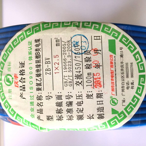廣州慶豐電線產品標簽